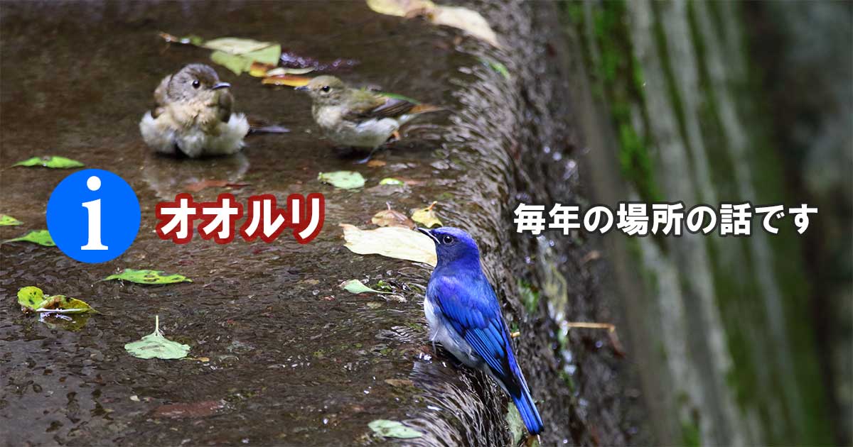 例年、営巣を終え、家族連れのオオルリが、この水場を使いに降りて来ます。距離も至近距離とは言えませんが、そこそこの写真が狙えます。